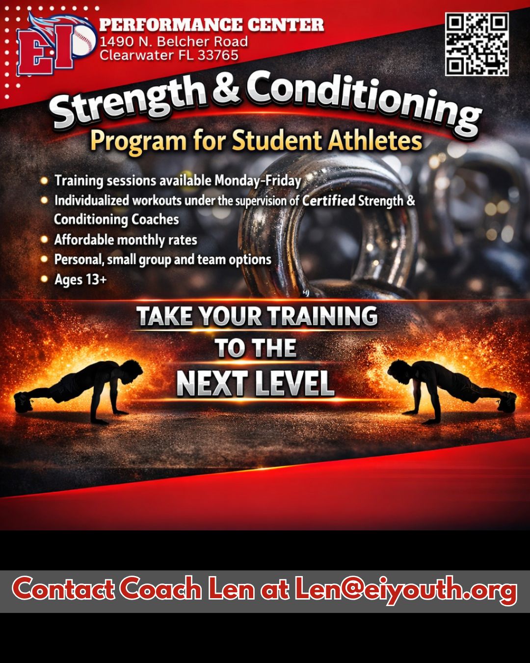 We offer comprehensive strength and conditioning programs for all student athletes, not just baseball players. These programs include personalized evaluations by our certified athletic trainers & programs at one of our two indoor locations or on-line.